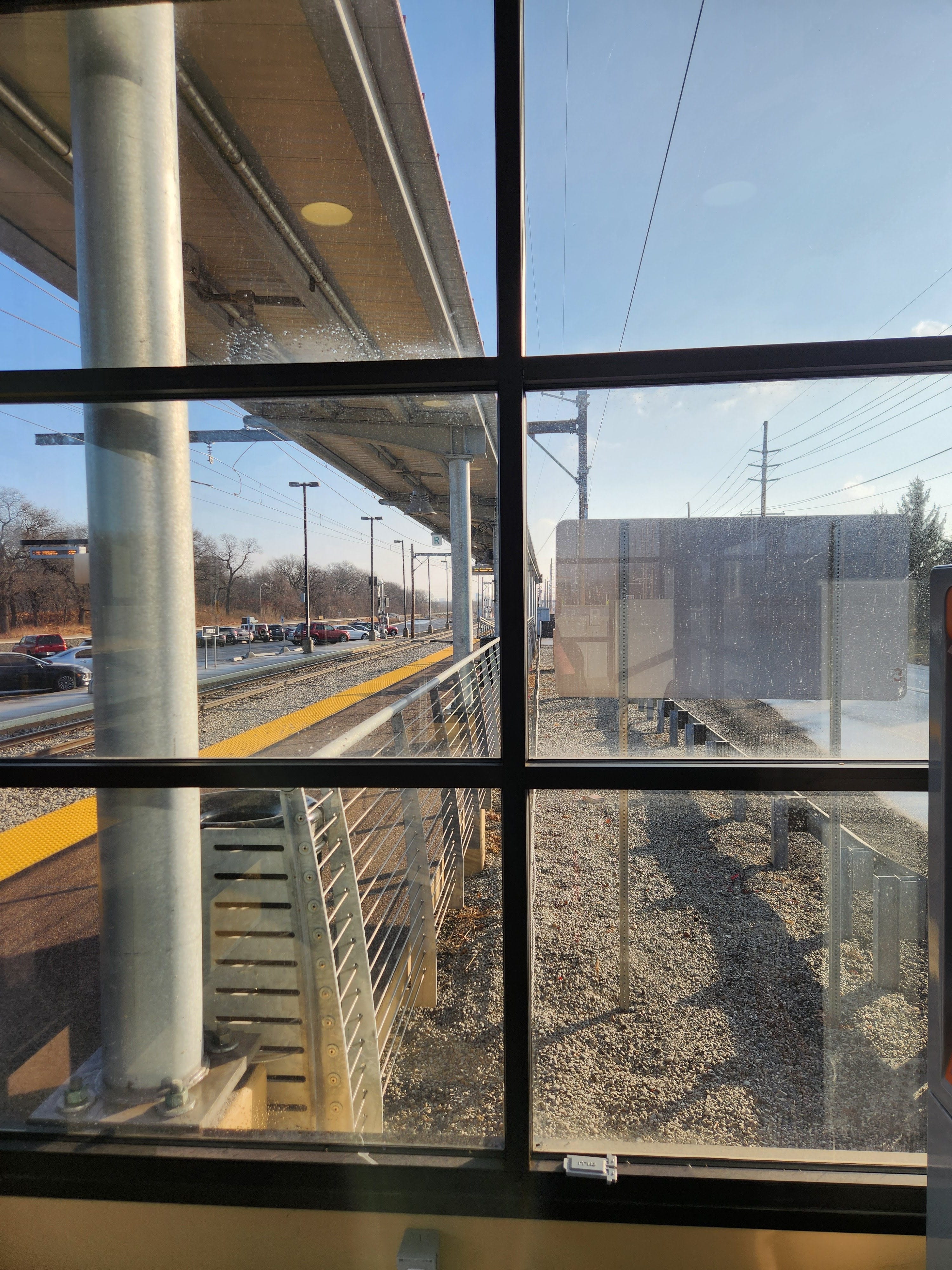 The train was only 5 minutes late! I loved how the tracks and platform looked through this division of six equal pieces.