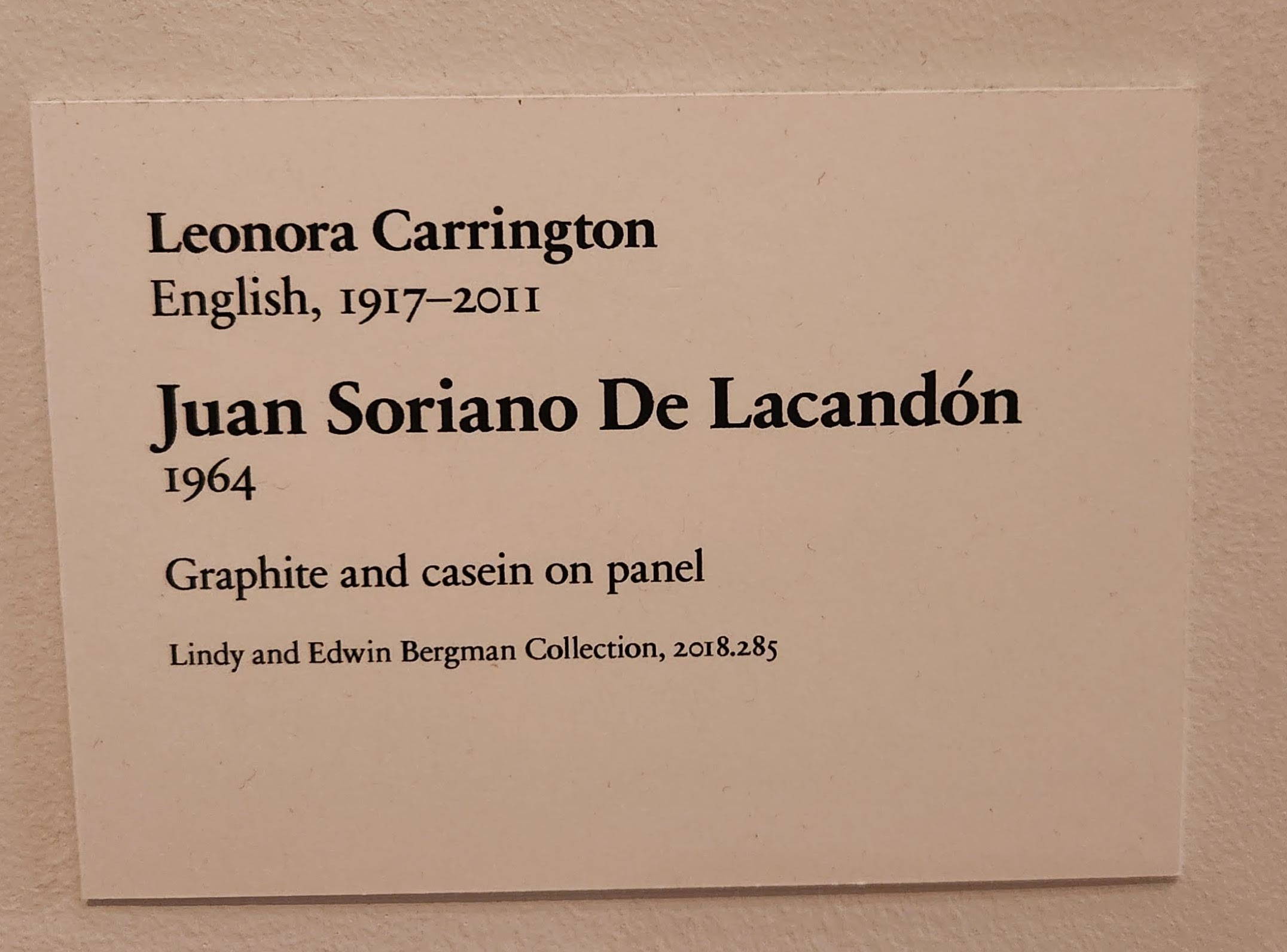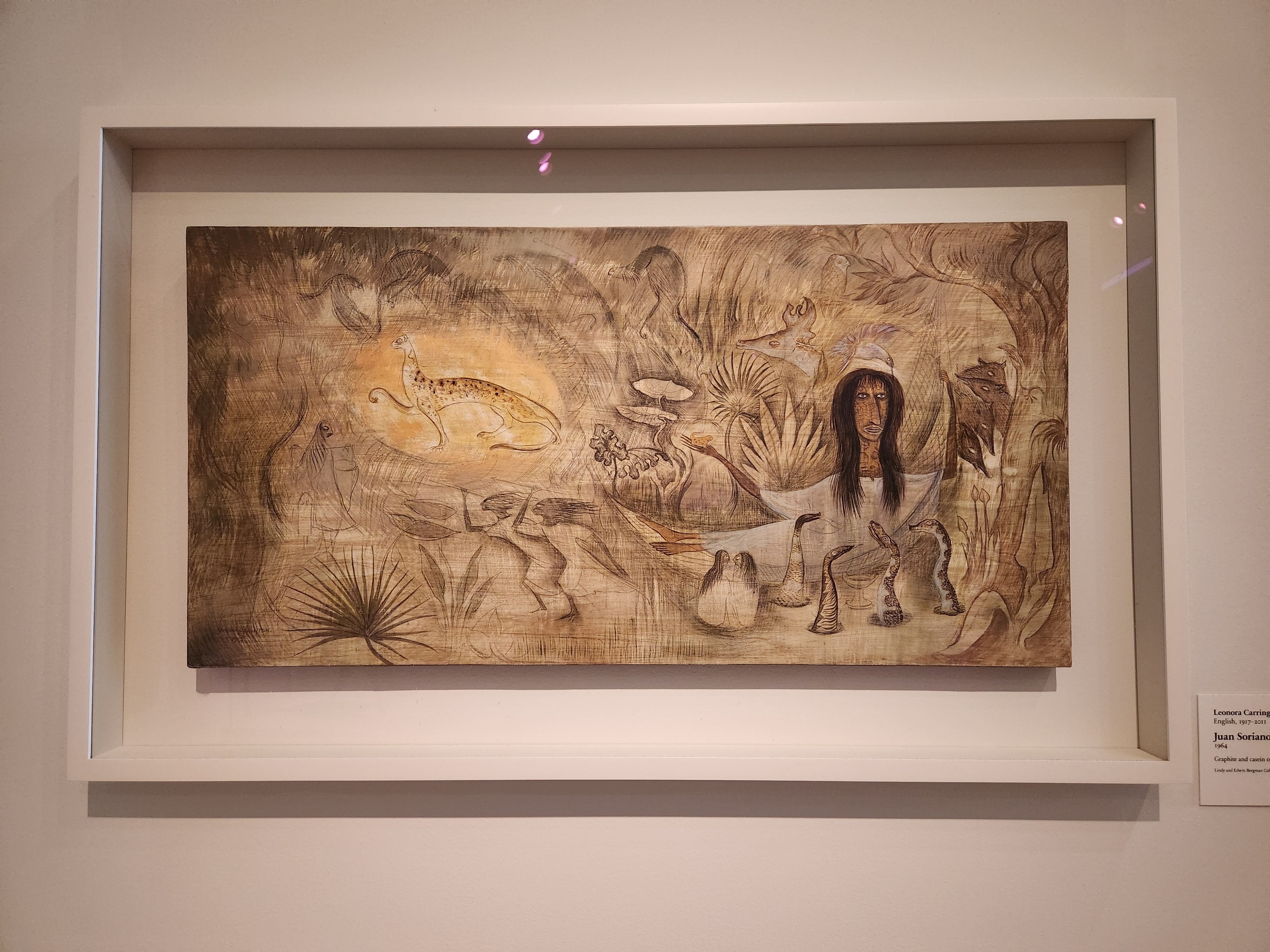 This painting was my first stop. This Carrington painting is the only one currently on view in the Art Institute. As much time as I have spent in this gallery, I missed this painting because it is tucked in a corner in a darkened part of the room. It is hung diagonally from the Joseph Cornell Boxes I visit every time!